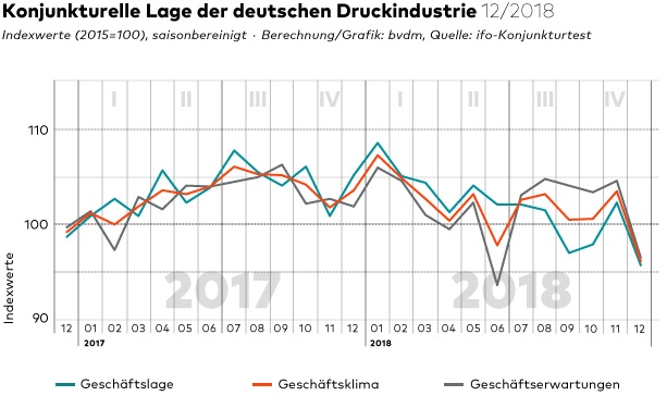 De stemming onder Duitse drukkers in december 2018 was precies het omgekeerde van het jaar ervoor; negatief.