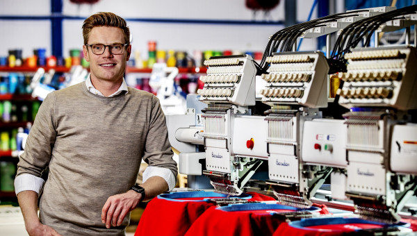Wat komt er dan wel in die nieuwe hal te staan? Ook daarover vertelde Haan op de Vakdag Print & Sign. De huidige Brother-textielpersen met een productiviteit van 15 stuks kleding per uur worden bijvoorbeeld vervangen door Kornit-persen die 180 stuks kleding per uur kunnen bedrukken. Al die gedrukte spullen moeten efficiënt worden ingepakt. Daarvoor schafte Simian een Packsize-machine aan. Na automatische kartoninvoer kan deze ongeveer zes meter brede machine naast elkaar verschillende formaten dozen geautomatiseerd in elkaar zetten. Spandoeken, meshdoeken en mastvlaggen worden voortaan bedrukt op een ook al nieuw aangeschafte Durst RHO 512R LED-machine, die een Mutoh grootformaat printer vervangt. De Mutoh printte van de rol tot 2,5 meter breed. De Durst-mastodont kan tot vijf meter breed printen. De grote spandoeken en andere producten kunnen er zonder zomen mee worden geproduceerd en dubbelzijdig worden bedrukt.