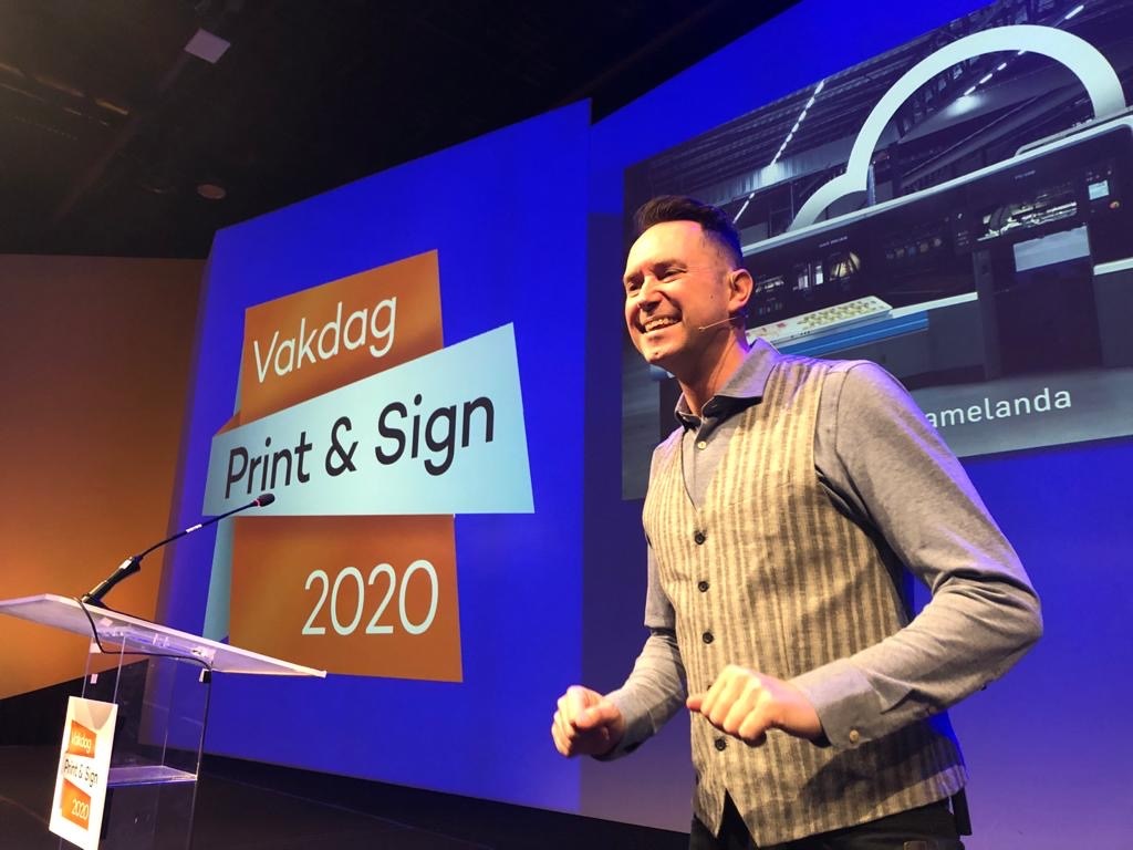 Wouter Haan genoot zichtbaar van zijn presentatie voor een groot grafisch publiek tijdens de Vakdag Print & Sign 2020.